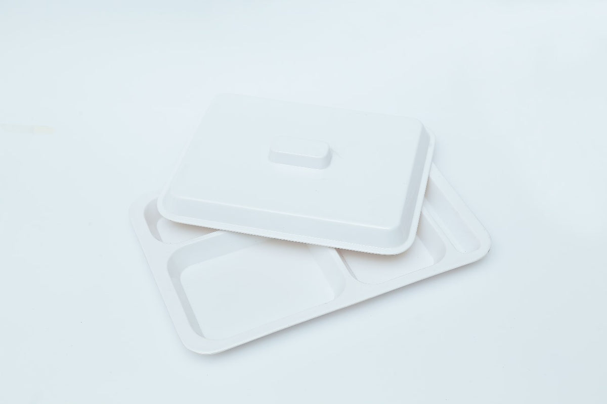 Our Five-Portion Plate with Lid is a versatile and practical solution for serving meals with multiple components. With five separate compartments, this plate is ideal for balanced meal